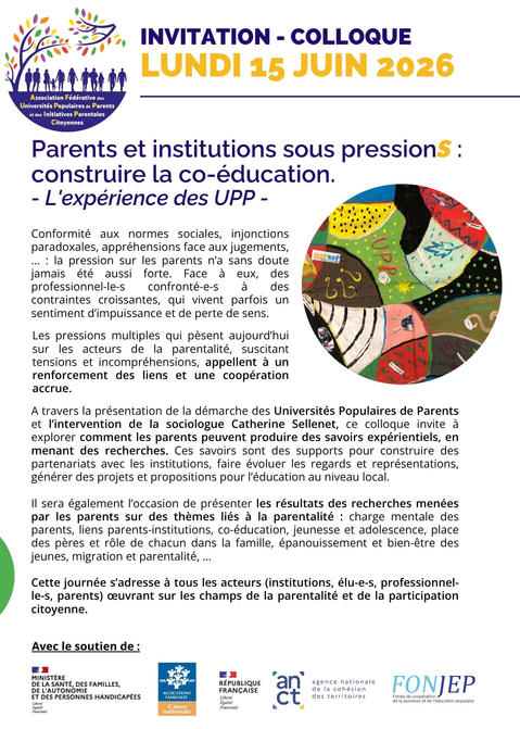 Colloque AF UPP - 15 juin 2026 : "Parents et institutions sous pressions : construire la co-éducation. L'expérience des UPP."